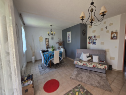 Jolie maison de plain-pied coquette et bien ntretenue comprenant : entrée (placard), pièce de vie avec baie vitrée donnant sur laterrasse, cuisine aménagée/équipée, dégagement nuit, wc, 3 chambres avec placards, cellier et garage. Le tout sur un agréable jardin clos et arboré de 403 m2. Village avec école et toutes commodités.