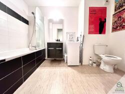 - Une salle de bain composée d'une baignoire, d'une simple vasque , d'un miroir, d'un sèche serviettes et d'un wc (emplacement machine à laver) => 5.98 m2