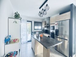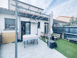 POLLESTRES VILLA A LOUER - Dans un quartier résidentiel à proximité des commerces - Villa récente 3 faces sur un terrain d'environ 320 m² de 94 m² Elle est composée comme suit : - un espace de vie ouvert donnant sur une terrasse de plain pied = cuisine équipée ouverte sur le séjour - salon - une suite au RDC avec salle d'eau et dressing - à l'étage 2 chambres et une salle d'eau 3 wc - Terrasse - terrain de pétanque - Panneaux photovoltaïques - demi garage - stationnement 2 véhicules devant la maison. Disponible au 1er janvier - GLI demandée