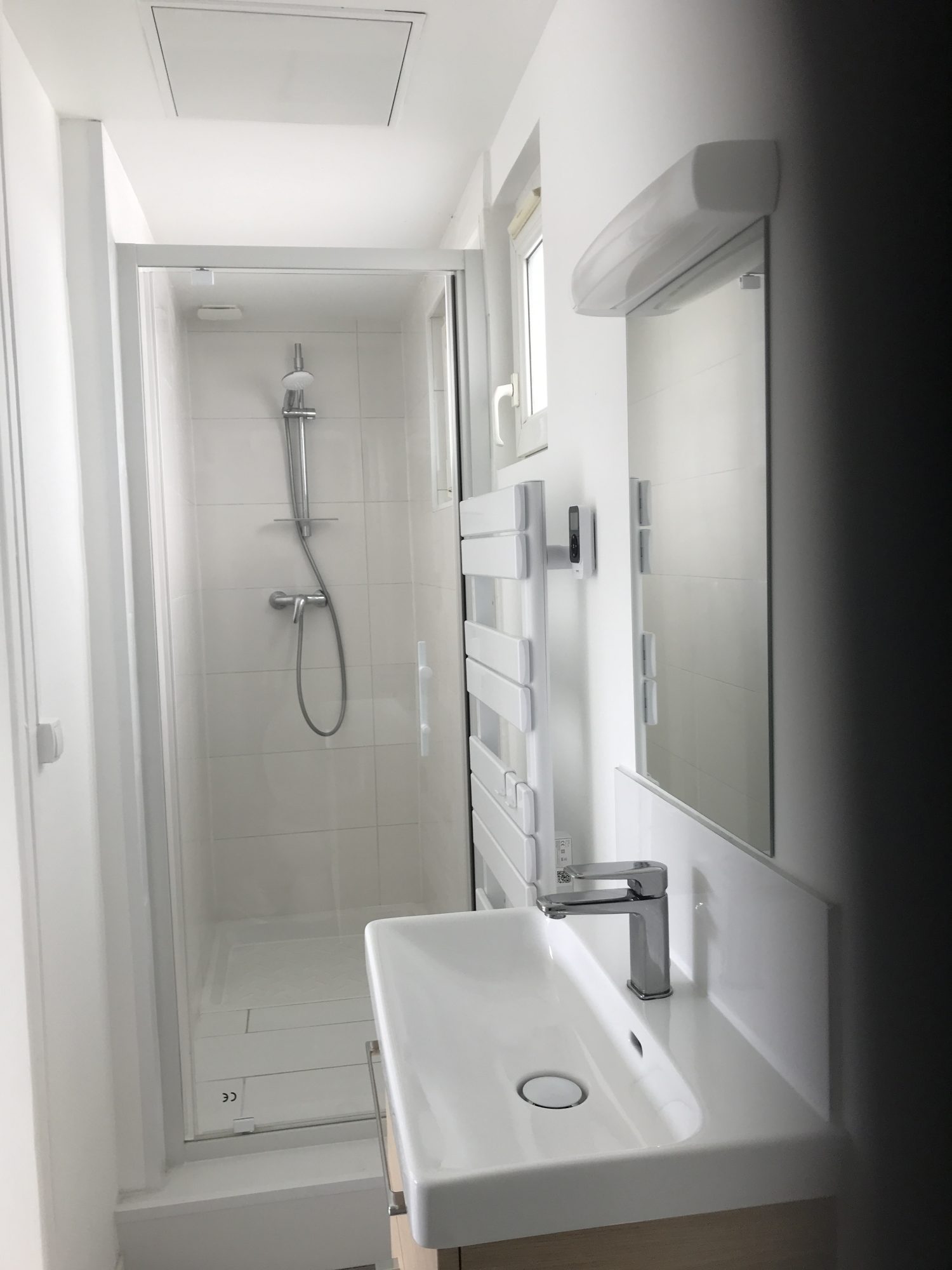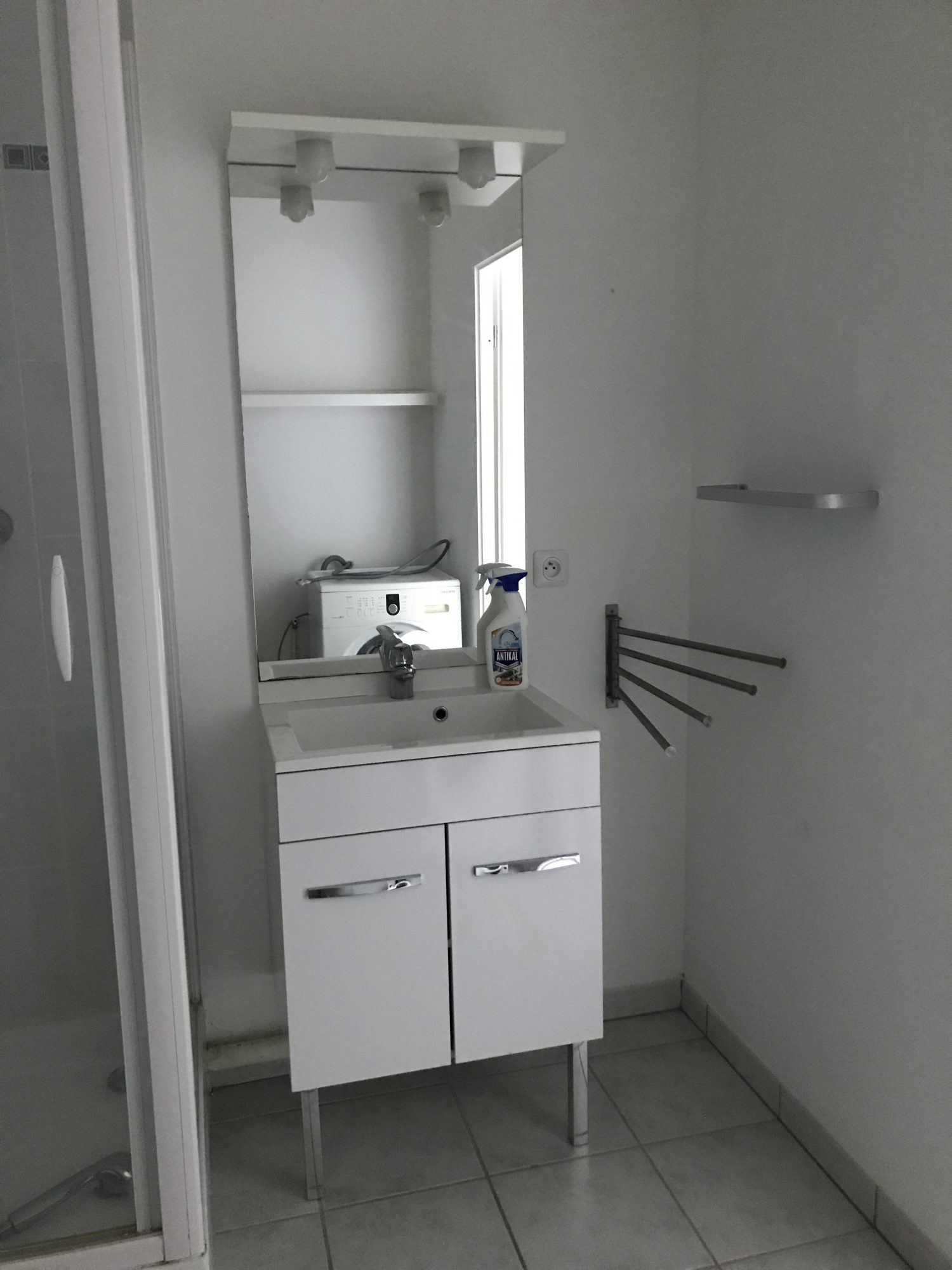 PONT DE L'ARCHE CENTRE, au pied des commerces, appartement situé au 1er étage de la résidence, F2 comprenant une entrée, cuisine aménagée et équipée d'une hotte aspirante, four, plaque de cuisson 3 feux, salle de douche récente avec wc, une chambre. Chauffage individuel électrique, eau froide dans les charges, edf individuelle.
