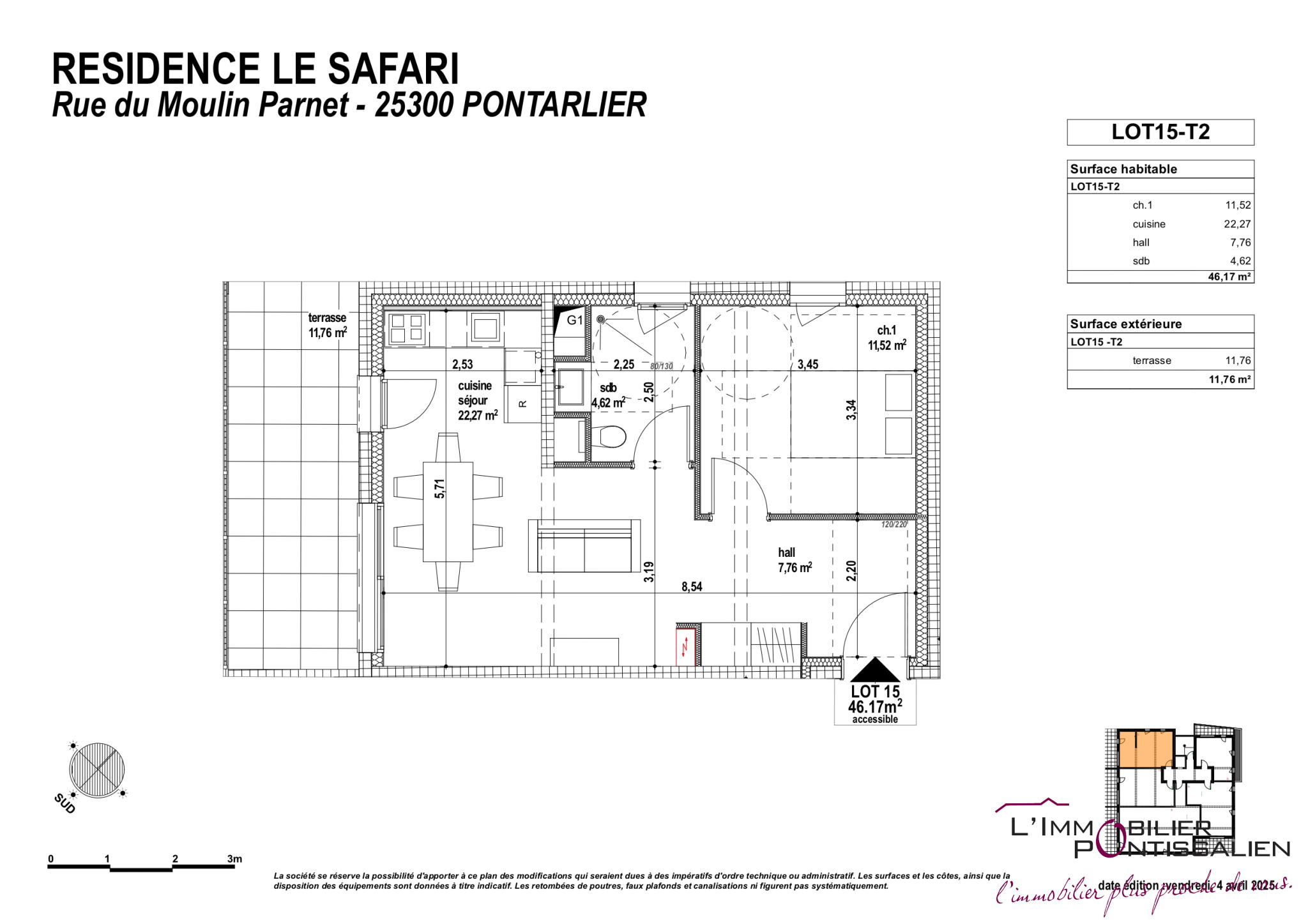 PONTARLIER - HYPER CENTRE : APPARTEMENT DE TYPE 2 AVEC TERRA