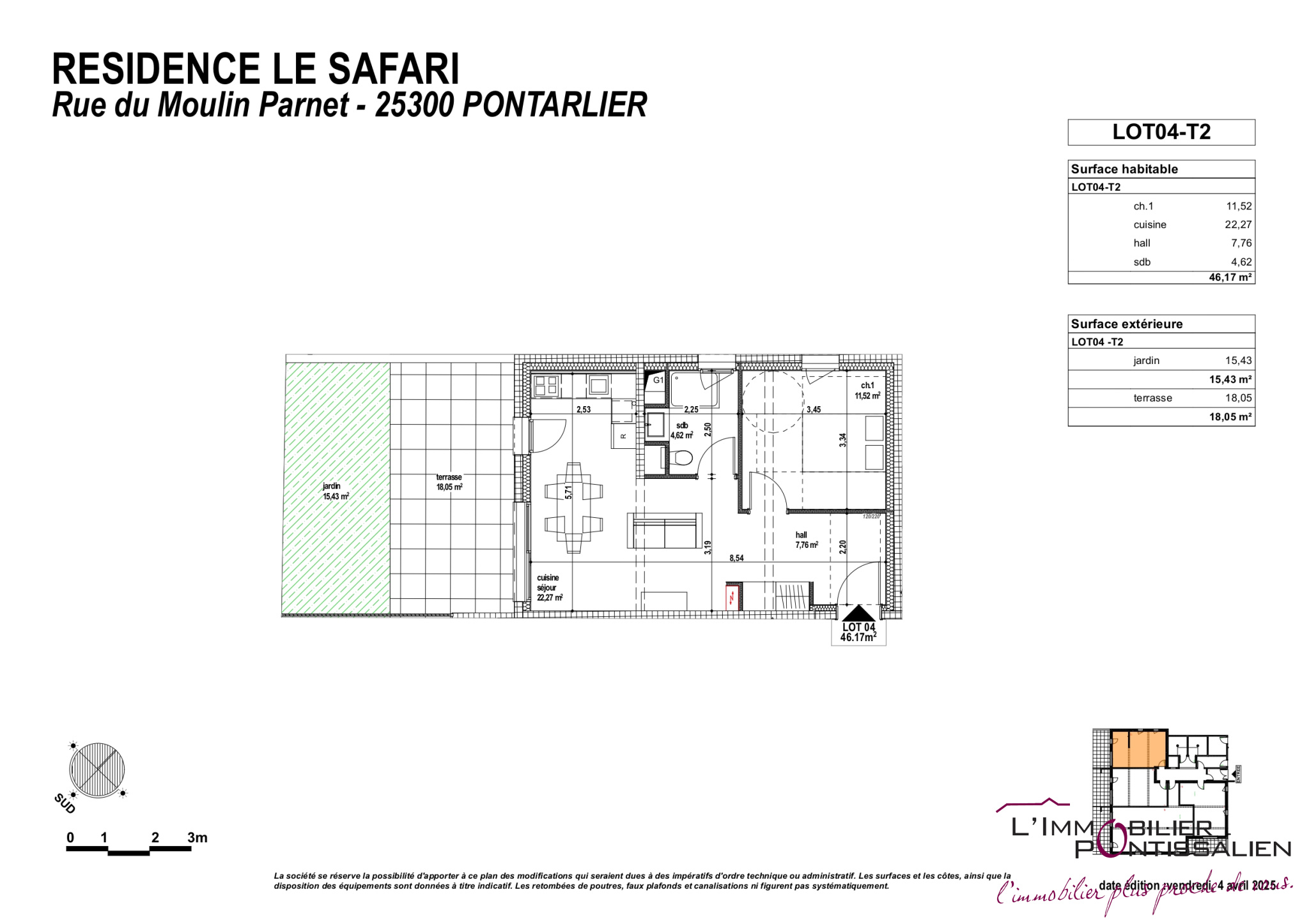 PONTARLIER - HYPER CENTRE : APPARTEMENT DE TYPE 2 AVEC TERRA
