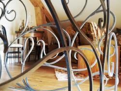 - Un séjour de 60m2 avec de grandes ouvertures en bois donnant accès sur la terrasse, le terrain et le balcon laissant entrer la lumière naturelle et créant une atmoshère chaleureuse et acceuillante.