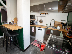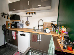 PONTARLIER, dans le quartier du Toulombief proche du centre ville, un appartement de type 2 bis au deuxième étage d'une petite copropriété comprenant : Depuis un accès par un escalier privatif, entrée, cuisine ouverte aménagée et équipée, une salle de bain avec baignoire balnéo et douche, WC, salon-séjour avec un poêle à granulé une grande chambre, en sous pente deux pièces aménagées une chambre enfant la seconde une buanderie. Au rez de chaussée, une chaufferie, une place de parking, deux caves et un grand jardin privatif.