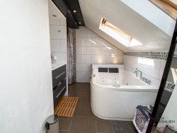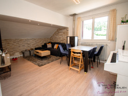 PONTARLIER, dans le quartier du Toulombief proche du centre ville, un appartement de type 2 bis au deuxième étage d'une petite copropriété comprenant : Depuis un accès par un escalier privatif, entrée, cuisine ouverte aménagée et équipée, une salle de bain avec baignoire balnéo et douche, WC, salon-séjour avec un poêle à granulé une grande chambre, en sous pente deux pièces aménagées une chambre enfant la seconde une buanderie. Au rez de chaussée, une chaufferie, une place de parking, deux caves et un grand jardin privatif.