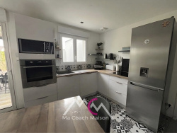 Dès l'entrée, vous serez séduit par un espace accueillant avec placard, ouvrant sur une belle pièce de vie lumineuse. Le séjour, chaleureux et convivial, est agrémenté d'un poêle à pellets et s'ouvre sur une cuisine moderne, aménagée et entièrement équipée. La maison offre une organisation idéale avec un espace parental comprenant : une chambre, un dressing et une salle d'eau privative. L'espace enfants se compose de deux chambres, d'une salle de bain avec wc, et d'un wc indépendant. Un cellier/buanderie et un garage attenant viennent compléter les prestations de ce bien et vous offre de beaux espaces de rangements. . Profitez pleinement des extérieurs grâce aux 2 terrasses, dont une avec pergola, parfaite pour vos moments de détente en famille ou entre amis. Implantée sur un terrain clos d'environ 350 m2 avec portail en aluminium, elle offre également la possibilité de stationner plusieurs véhicules, et dispose d'un emplacement de 7m20 empierré et permettant de stationner un camping-car.