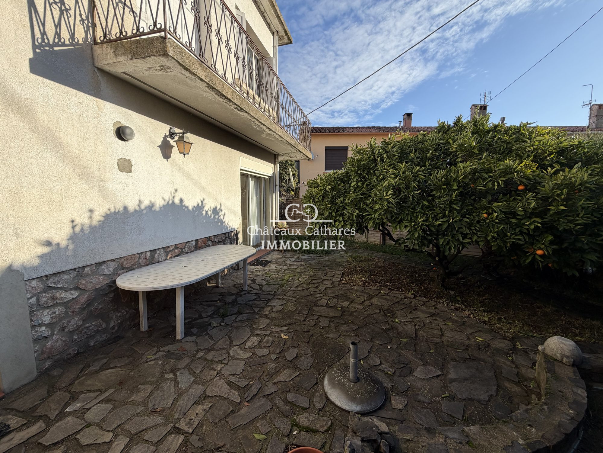 Charmante maison de village 4 pièces d'une superficie de 100 m2 habitables, située dans un quartier calme de Ponteilla, à proximité immédiate de toutes les commodités, commerces et écoles. Ce bien se compose, au rez-de-chaussée, d'une entrée, d'une cuisine séparée, d'un double salon-séjour d'environ 33 m2, ainsi que d'une buanderie et d'un espace de stockage de plus de 20 m2, incluant une salle d'eau et des toilettes. À l'étage, vous trouverez trois belles chambres, dont l'une avec un accès à une agréable terrasse de 7 m2, ainsi qu'un bureau, idéal pour une famille en résidence principale ou secondaire. Parmi les équipements, la maison dispose de double vitrage, de radiateurs à inertie sèche et de volets électriques alimentés par énergie solaire. Cette maison de type 'deux faces' en angle bénéficie également d'un petit jardin aménageable, sans vis-à-vis, pour profiter pleinement de l'extérieur. Votre agence se tient à votre disposition pour toute question ou information ! Contactez notre agence CENTRAL IMMOBILIER cecile@centralimmo66.com ou 0612981271