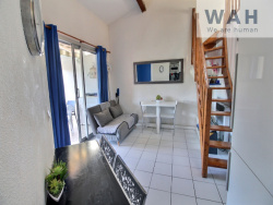 PORT CAMARGUE - SECTEUR PLAGE NORD Dans une résidence face à la plage et proche des commerces. Appartement de type 2 pièces traversant situé au 2e étage. Comprenant un séjour avec cuisine ouverte, une cabine pour lit double ou lits superposés, une salle d'eau avec seche serviette et emplacement pour le lave-linge, un WC et une chambre avec placard. Une terrasse côté séjour exposée OUEST offrant une superbe VUE MER et un balcon côté chambre exposé EST. Vendu avec un parking privé et un cellier. Vendu intégralement meublé. Volets roulants motorisés et store banne motorisé dans le séjour. Bien soumis au statut juridique de la copropriété. Nombre de lots à usage d'habitation : 177