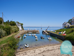 À proximité immédiate de la plage de Port-Lay, maison rénovée avec studio indépendant ****Reportage photos complet en cours de réalisation**** Située sur les hauteurs de Port-Lay, cette maison entièrement rénovée bénéficie d'un environnement calme, à quelques minutes à pied de la plage. L'entrée s'ouvre sur une pièce de vie d'environ 60 m2, lumineuse et bien agencée, comprenant salon, séjour et cuisine.Le rez-de-chaussée propose également une chambre, une salle d'eau et un WC, permettant une vie de plain-pied. À l'étage, trois chambres supplémentaires ainsi qu'une seconde salle d'eau avec WC complètent l'ensemble. Attenant à la maison, un studio indépendant offre un espace supplémentaire appréciable, que ce soit pour recevoir ou pour un usage locatif. Il comprend une pièce de vie avec kitchenette, une salle d'eau avec WC et une chambre en mezzanine. Chaque espace dispose de sa terrasse en bois, ouverte sur un jardin d'environ 1000 m2, sans vis-à-vis. Un local annexe d'environ 16 m2 vient compléter le bien. La plage de Port-Lay est accessible en moins de 5 minutes à pied, le bourg et Port-Tudy à environ 15 minutes. Prix : 790 000 EUR Honoraires à la charge du vendeur Les informations sur les risques auxquels ce bien est exposé sont disponibles sur le site Géorisques : www.georisques.gouv.fr