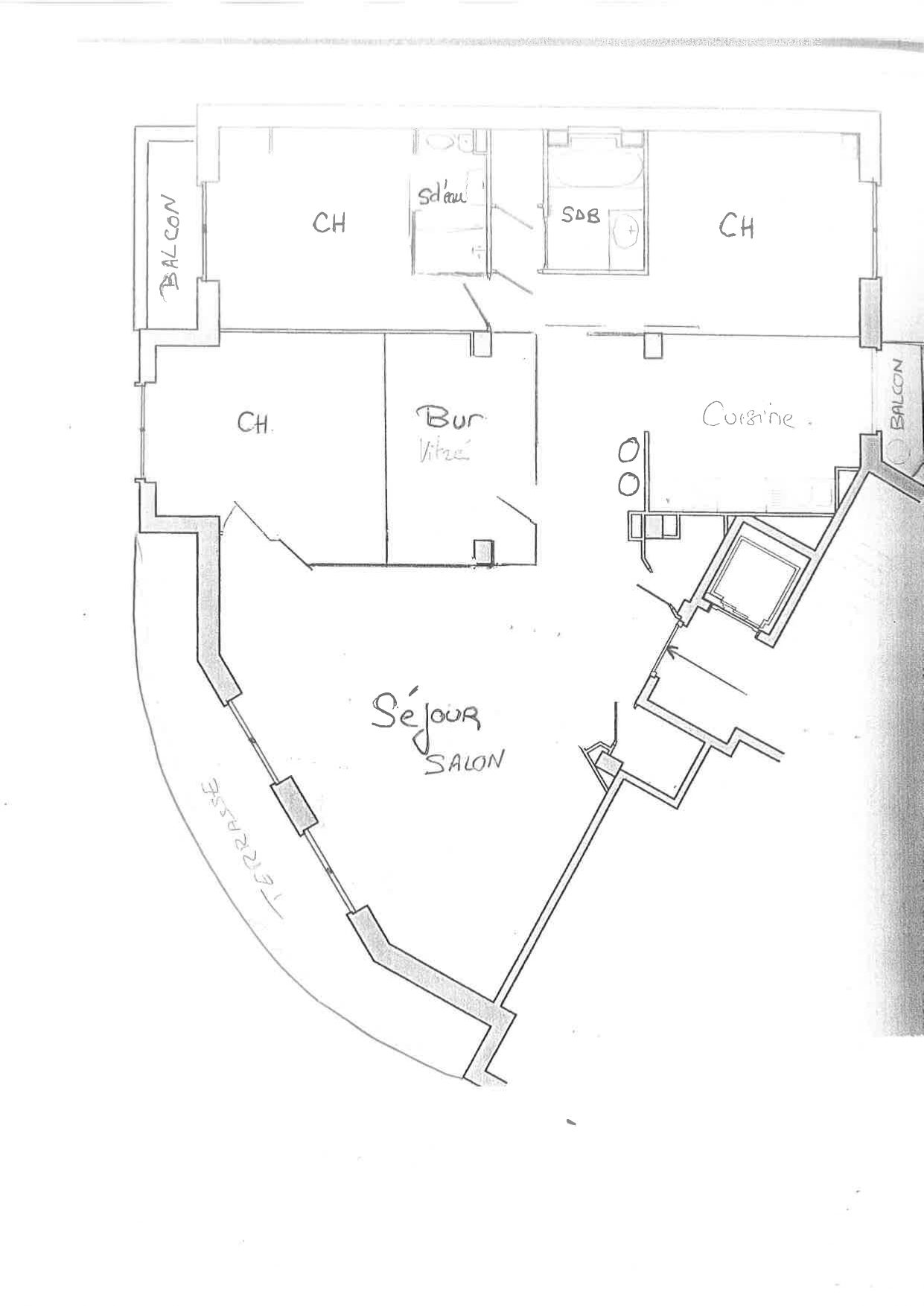 Préfecture T3/4 traversant de 98 m² avec balcons et possible g