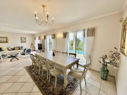 247 m2 habitables sur un terrain de 1500 m2 Secteur calme et prestigieux Vaste pièce à vivre avec salle à manger et séjour, exposée Ouest, incluant une cuisine ouverte et entièrement équipée Grande terrasse avec piscine chauffée et cuisine d'été Vue dégagée sur les collines 5 chambres, dont une suite parentale avec terrasse privative Salle de cinéma, buanderie et cave au niveau inférieur Plusieurs stationnements extérieurs