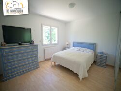 Construite en 2002, sur 2 niveaux, elle offre un très bel espace de vie lumineux de près de 50m2 avec cheminée donnant sur le jardin grâce à de grandes baies vitrées plein sud.