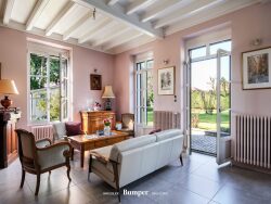 Les prestations : Menuiseries bois/aluminium double vitrage neuves, avec oscillo-battants Volets extérieurs électriques et moustiquaires intégrées Chauffage électrique + appoint gaz (en dessous de -3°C) Raccordement tout-à-l'égout réalisé en 2015 Toiture rénovée en 2025 · Ravalement de façades en 2015 Hauteur sous plafond jusqu'à 3,65 m Abri deux voitures DPE : E/E Ce que l'on aime :