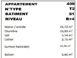 L'appartement offre une pièce de vie lumineuse avec cuisine aménagée, prolongée par un balcon agréable, idéal pour profiter des beaux jours. Il dispose également d'un cellier, d'une chambre confortable ainsi que d'une salle d'eau avec WC.