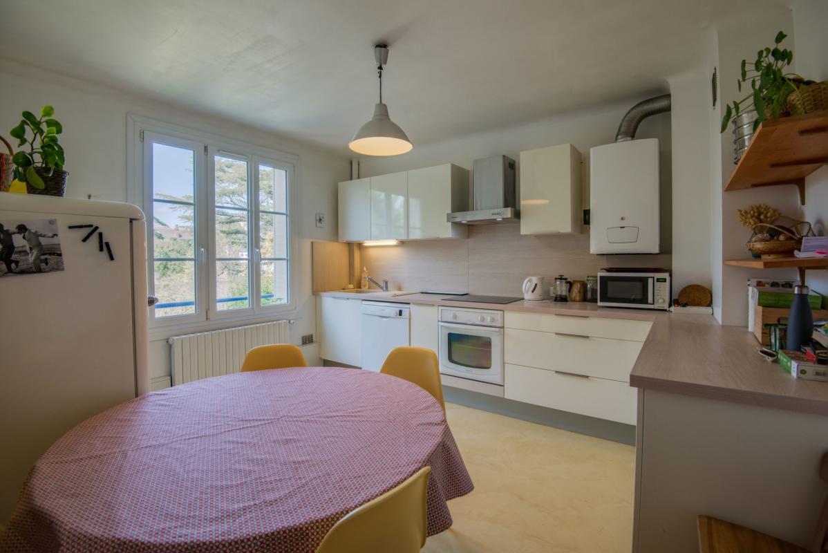 - entrée avec placard - salon-séjour sur parquet donnant à une terrasse exposée sud-est - cuisine indépendante aménagée et équipée (four-plaques-hotte) - deux chambres - salle de bains - wc.