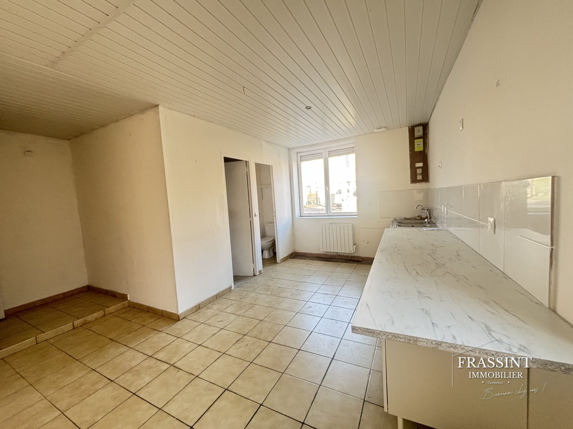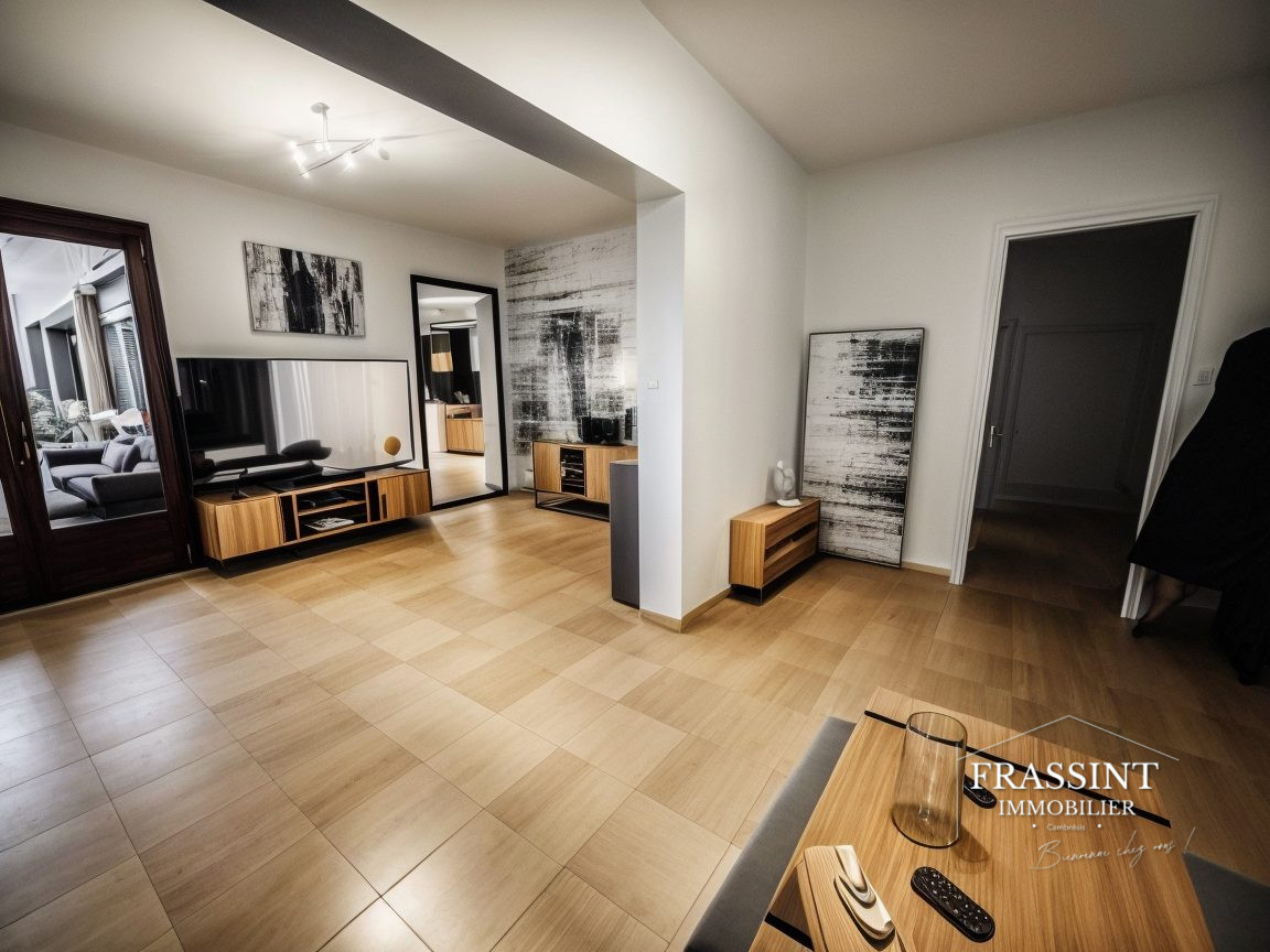 Uniquement chez FRASSINT IMMOBILIER. Située à proximité immédiate du centre ville de CAMBRAI dans une rue calme à sens unique. Cette maison familiale de bel étage en construction traditionnelle en retrait de rue d'environ 97m2 dessert: Au rez-de-chaussée une belle pièce de vie donnant la perspective à votre imagination pour l'aménager ( pièce de réception, salle à manger...) une cuisine équipée, une véranda qui peut rajouter de la superficie à la maison. Donnant sur un jardin clos exposé sud Ouest. Une dépendance de 26 m2 au fonds de celui-ci pour votre espace de stockage. Au premier niveau vous retrouverez un séjour de plus de 27m2 ( possibilité d'y remettre une cuisine), une salle de bains avec baignoire et WC. Au 2 ème étage 3 chambres avec rangements. Double vitrage PVC, chauffage central gaz ( chaudière environ 10 ans) FAIRE VITE. BELLE OPPORTUNITE A SAISIR!!