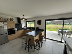 Maison de 111 m2 habitables dans un état exceptionnel, toutes commodités en rez de chaussée. Elle est composée d'un grand séjour traversant Sud-Nord de 37 m2 donnant accès à deux terrasses sans aucun vis-à-vis dont l'une abritée par une très belle avancée de toit, une cuisine semi ouverte totalement aménagée et équipée complétée d'un cellier-buanderie aussi accessible à partir du garage avec ballon d'eau chaude thermodynamique et pompe à chaleur réversible air-air. La partie nuit est composée d'un wc indépendant, d'une salle de douche et baignoire complétées de deux vasques puis trois chambres dont deux équipées de placards penderies et la troisième d'un dressing privatif. Vous apprécierez les agréments principaux de cette maison pour sa situation géographique mais aussi pour la qualité de sa construction et des matériaux choisis. La parfaite distribution des pièces lumineuses, le choix d'un chauffage performant et économique mais aussi le garage attenant de 33 m2 avec ses rangements, la plateforme de stationnement privative et le terrain totalement clos, plat et parfaitement entretenu confèrent à ce bien une utilisation très confortable. Cette maison récente répond aux dernières normes de la construction, elle bénéficie par conséquent d'un coefficient énergétique excellent : A !!! Cette annonce vous est proposée par GUESNÉ Philippe - EIRL - NoRSAC: 753172402, Enregistré à Greffe du tribunal de commerce de PAU - Annonce rédigée et publiée par un Agent Mandataire -