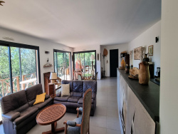 Sur un îlot de verdure, villa d'architecte aux lignes contemporaines, de plain pied au milieu de 4227m2 de terrain arboré , offrant 130 m2 de surface habitables, excellentes prestations comprenant, une vaste et lumineuse pièce à vivre de 83m2 (séjour/salon/cuisine US) donnant sur une magnifique terrasse en bois couverte de 40m2 environ avec vue imprenable sur la nature, 3 chambres dont 2 suites avec salle d'eau et wc, une buanderie et wc séparé. A visiter sans tarder...Annonce rédigée et publiée par un agent mandataire Cédric ATHANASSARAS, EI, RSAC de Montpellier 450584 719 Les informations sur les risques auxquels ce bien est exposé sont disponibles sur le site Géorisques : www.georisques.gouv.fr. Cette annonce vous est proposée par AGENCE BAZILLE - SAS - NoRSAC: , Enregistré à de - Annonce rédigée et publiée par un Agent Mandataire -