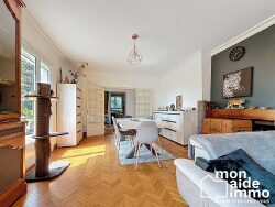 A l'étage : Une seconde entrée donnant sur un couloir qui mène à un séjour très lumineux de 34 m² une cuisine de 11 m², Deux chambres de 12 m², Une salle de bain, un wc indépendant.