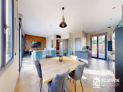 À l'étage, vous serez conquis par une superbe pièce de vie d'environ 50 m², ouverte sur une grande baie vitrée exposée plein sud avec une vue dégagée.La cuisine récente entièrement équipée ravira les amateurs de gastronomie et de moments conviviaux. Une suite parentale vient compléter ce niveau, offrant un espace intime et confortable. À l'extérieur, profitez d'une superbe terrasse avec pergola, véritable havre de paix à l'abri des regards, idéale pour vos instants de détente. Située dans un quartier calme, à proximité immédiate des commerces et commodités, cette maison bénéficie d'un emplacement privilégié. ? Une construction de qualité du sol au plafond, et un charme fou un bien rare à découvrir sans tarder !