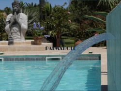 VENTE PROPRIETE PERPIGNAN 303m² Dans un secteur privilégié au calme, cette splendide villa d'architecte revisitée par une décoratrice de talent, offre une parcelle de plus de 3600m² superbement paysagée ainsi que plus de 300m² habitables. Répartis en une spacieuse pièce de vie avec cheminée , une agréable cuisine équipée avec son arrière cuisine, le tout ouvrant sur les terrasses et le jardin, 4 suites dont 2 en rez de chaussée, 1 bureau et une buanderie. De plus un espace haut de gamme SPA avec grand jacuzzi , un appartement indépendant (1 chambre/ salon / cuisine équipée) et une charmante cuisine d'été jouxtant la piscine chauffée, apportent une grande qualité de vie à cette belle propriété. Garage double.