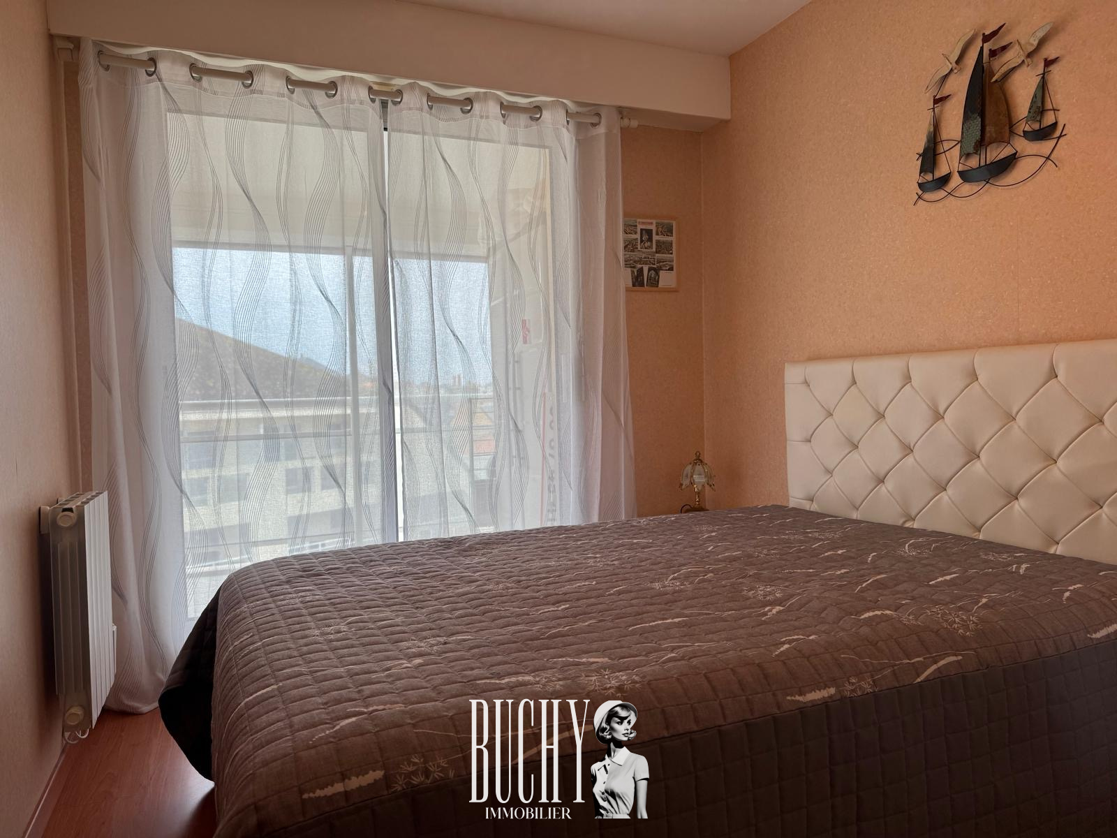 Au 1er étage d'une résidence sécurisée avec ascenseur, agréable appartement offrant une pièce de vie lumineuse ouverte sur un grand balcon exposé Sud/ Ouest, cuisine èquipée, dégagement avec 2 placards, chambre avec placards, salle d'eau, wc indépendant. Un garage en sous sol et une place de parking extérieure complètent ce bien.
