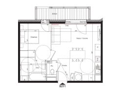 Entrée 2,87 m² - Séjour / Cuisine 23,69 m² - Chambre 10,76 m² - SDE 5,70 m² - WC 1.28 m² - Balcon 5,96 m²