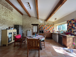 Vous rêvez d'un cadre de vie paisible et spacieux, entouré de verdure ? Cet ensemble immobilier est fait pour vous ! Découvrez cet ensemble unique composé de deux maisons et de dépendances, idéal pour un projet familial ou un investissement en gîte/chambres d'hôtes, niché sur un terrain de plus de 2,8 hectares. Maison Principale (220m2 habitables) Sur deux niveaux, cette maison spacieuse et confortable offre un système de chauffage central par chaudière à pellets et comprend : Au 1er niveau : o Une cuisine avec accès direct à une grande terrasse couverte de 30m2, parfaite pour des moments de détente en plein air. Une vaste pièce de vie de 56m2 avec un insert, idéale pour des soirées chaleureuses. o Un dégagement menant à deux suites parentales pour votre confort et votre intimité. o Un Wc indépendant. Au 2ème niveau : Un grand dégagement pouvant servir de bureau ou d'espace détente. Deux chambres supplémentaires. Une salle d'eau avec Wc. Maison d'Amis / Gîte (100m2 habitables) De plain-pied, cette seconde maison est parfaite pour accueillir des invités ou créer un espace de location indépendante : o Une pièce de vie lumineuse avec cuisine et poêle à bois, donnant sur une terrasse privée. o Trois chambres confortables. o Une buanderie avec Wc et une salle d'eau avec Wc. o Chauffage par radiateurs électriques. Les deux habitations sont chacune équipées de compteurs électriques et fosse autonomes. Découvrez cette magnifique propriété entièrement rénovée avec soin, où chaque détail a été pensé pour préserver le charme de l'ancien tout en offrant le confort du moderne. Beau mariage de l'élégance des matériaux nobles et des finitions haut de gamme. Pour plus d'informations ou une visite, contactez-nous dès maintenant ! Honoraires charge vendeurs Les informations sur les risques auxquels ce bien est exposé sont disponibles sur le site Géorisques. Montant estimé des dépenses annuelles d'énergie pour un usage standard : entre 3940 EUR et 5390 EUR par an. Prix moyens des énergies indexés sur l'année 2021/2022/2023 (abonnements compris) Consommation énergie finale : 215 kWh/m2/an. Cette annonce vous est proposée par HAMIONI Fatima - EI - NoRSAC: 822 570 529, Enregistré à Greffe du tribunal de commerce de Auch - Annonce rédigée et publiée par un Agent Mandataire -