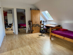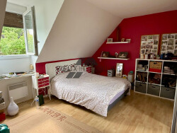 A l'étage sur un plancher béton, vaste palier desservant 3 grandes chambres.