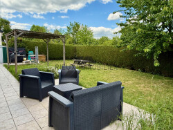 Garage 1 vl avec grenier au dessus, coin buanderie. Chauffage électrique, terrasse, jardin, l'ensemble sur une parcelle de 529m² sans vis à vis. Double accès véhicules (deux portails). Proche centre village, tous commerces à 2min à pieds.