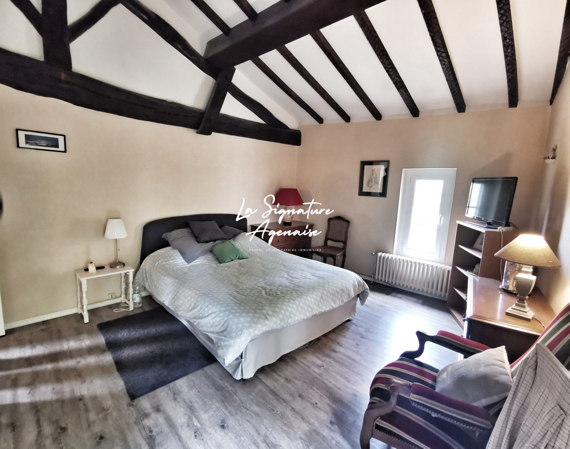 Élégance et Sérénité au Coeur du Pays d'Albret Située à seulement 10 minutes de Nérac, 15 minutes de Roquefort et du nouvel échangeur, cette somptueuse propriété vous invite à un art de vivre où le raffinement se mêle à la quiétude de la campagne. D'une superficie totale de 480 m2, dont 215 m2 habitables, cette demeure entièrement rénovée avec des matériaux de qualité offre des prestations haut de gamme et de vastes espaces de vie.