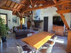À 25mn de NANTES (Pont de Bellevue) et 20mn de CHOLET, cadre de vie exceptionnel pour cette Propriété de 5 hectares boisés comprenant : Maison d'architecte 217m2 habitables exposée au Sud-Ouest + 4 garages fermés, carport, atelier, abri de jardin, abri de prairie, poulailler, chenil, tunnel de stockage, ... La maison (3 chambres, 4/5 possibles), qui offre une vue superbe depuis toutes les pièces, est composée comme suit. Au rez-de-chaussée de : Hall d'entrée, beau salon - salle à manger (d'env. 60m2 avec grande hauteur sous plafond, accès vers terrasse et parc), cuisine AE avec accès vers terrasse et parc, arrière-cuisine/buanderie, grand bureau (ou salle de jeu et sport / possible chambre supplémentaire), deux chambres, une salle de douche, un WC séparé, bureau secondaire (possible chambre supplémentaire), véranda. À l'étage : Suite parentale comprenant chambre climatisée avec rangement/dressing et grande salle de douche avec WC. La maison est complétée de belles terrasses dallées, d'un cellier/chenil, local technique, cave en sous-sol (remise et cave à vin). Ensemble en excellent état général bénéficiant d'équipements de qualité : PAC aérothermique, 4 splits intérieurs climatisation/réversible, cheminée insert, radiateurs intelligents, double-vitrage, moustiquaires, volets électriques connectés, système de protection électronique, fibre internet haut débit, eau gratuite par le puits, microstation, ... La maison et ses principales dépendances sont sécurisées par le parc d'1,3 hectare entièrement clos (grillage de qualité, accès par portail télécommandé et portillon piéton). Autour du parc se trouvent un bois de chênes (en principal) et un petit étang poissonneux de 2600m2, fleuri de nénuphars en saison. La propriété se trouve au bout d'une allée, au calme, à l'abri des regards et de l'agitation, à 3km d'un bourg avec commodités (école, maison médicale, pharmacie, boulangerie, alimentation, boucherie charcuterie, ...), à 5,5km de l'accès à la N249 (voie expresse) permettant de relier rapidement NANTES et CHOLET. Taxe foncière : 1187 EUR. Complément d'information et visite sur demande référencée. Cette offre exclusive vous est présentée par DEMEURES & CARACTÈRE, une marque du Cabinet RETZ IMMOBILIER ; Agence spécialiste de l'immobilier de Caractère, Atypique, Rural, Équestre, d'Exception et de Prestige dans les villes, villages, campagnes et sur le littoral de Loire-Atlantique, Morbihan, Vendée et les départements limitrophes. @MNNRICD. Réf. mandat exclusif : 110938-219904. Contact : Chris DUBOIS. - Annonce rédigée et publiée par un Agent Mandataire -