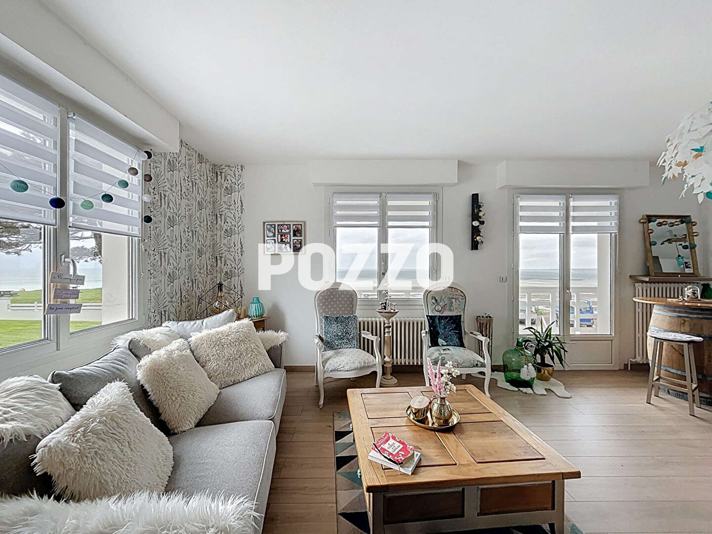POZZO Immobilier vous propose à Donville les Bains la villa "Les Mésanges", belle propriété en pierres datant de 1910, édifiée sur un parc clos de 1 498 m². Le sous sol comprend une cave, une buanderie et une chaufferie. Au rez de chaussée, un hall d'entrée distribue une cuisine aménagée et équipée, un vaste séjour lumineux avec salon et salle à manger agrémenté d'une cheminée, ainsi qu'un bureau et des toilettes. Au premier étage, un palier dessert deux chambres et une salle d'eau avec WC. Le deuxième étage offre un palier, une chambre supplémentaire avec une vue mer, une salle de bains équipées d'une douche et d'une baignoire, ainsi qu'un dressing, complétant l'espace nuit. Un bâtiment indépendant abrite, au rez-de-chaussée, un garage et, à l'étage, un studio, offrant des possibilités d'accueil indépendant ou de location. Le parc clos bénéficie d'une piscine extérieure, d'un abri de jardin et d'un local technique. Cette demeure allie charme ancien et confort fonctionnel, dans un environnement calme et résidentiel.