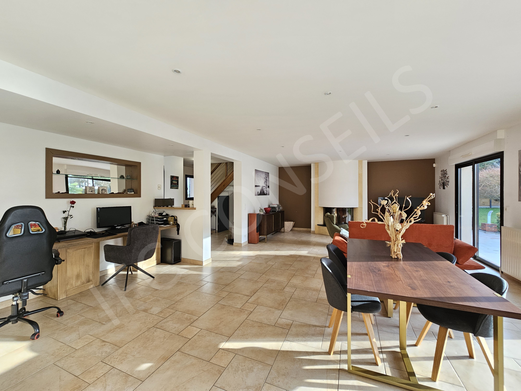 Une Maison Spacieuse et Lumineuse Avec une surface habitable de 220 m², cette maison de plain-pied sur quatre niveaux offre un espace de vie généreux et fonctionnel. Les cinq chambres, dont deux salles d'eau et deux WC indépendants, garantissent confort et intimité pour toute la famille.