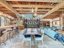 La cuisine ouverte sur le séjour est un véritable rêve pour les passionnés de cuisine, équipée d'un piano Lacanche avec trois plaques gaz, une grille mijoteur et une hotte professionnelle. Une cage d'escalier avec verrière illumine naturellement le jardin, créant une atmosphère lumineuse et apaisante. À l'étage, une mezzanine accueille un espace bureau, une suite parentale avec salle de bain et dressing, ainsi que deux chambres supplémentaires partageant une salle de bain. En annexe trois chambres avec salle de bain parfaites pour accueillir des invités ou compléter les besoins de la maison. Un appartement attenant d'environ 60 m² propose un séjour, une chambre et une salle de bain.