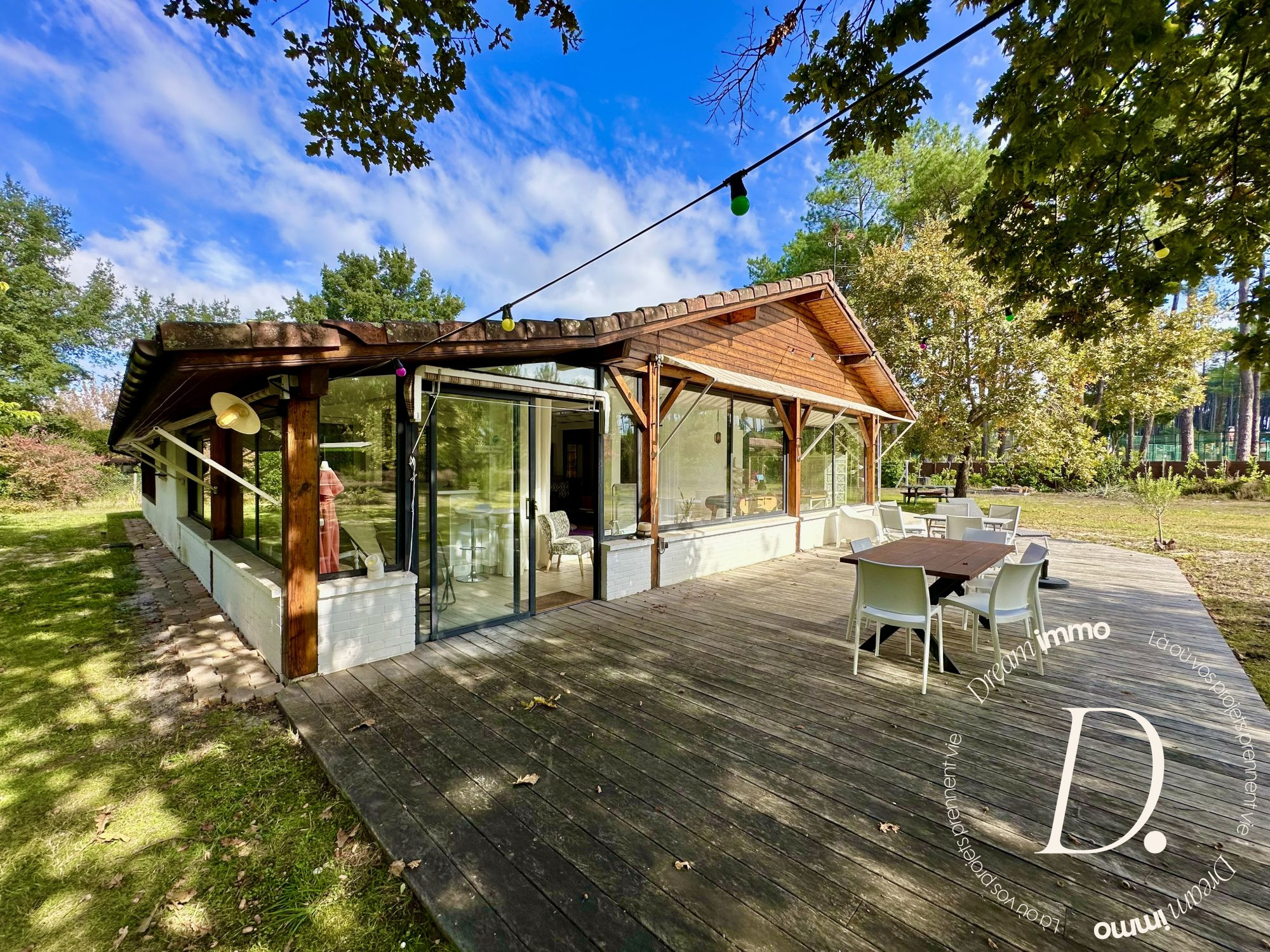 Airial landais de 5600 m² en pleine forêt, deux bâtisses entièrement rénovées avec également une longère avec son four à pain, une piscine, un spa, un sauna et un terrain de pétanque.
