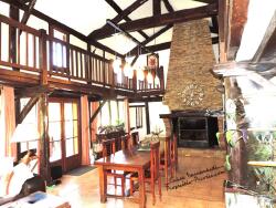 Elle est bien agencée avec une chambre plus une suite en rez-de-chaussée et deux à l'étage. Le séjour est chaleureux avec sa belle cheminée de pierres et sa coursive en bois. La cuisine est fonctionnelle, bien aménagée avec de nombreux équipements et rangements.
