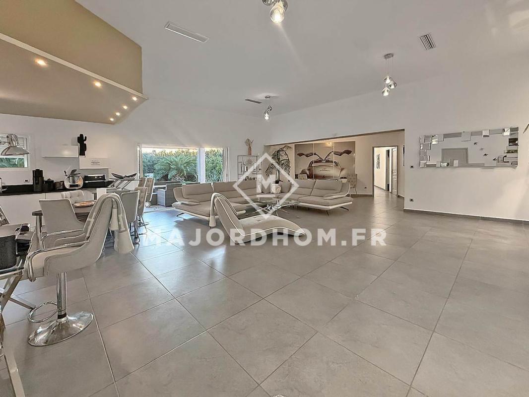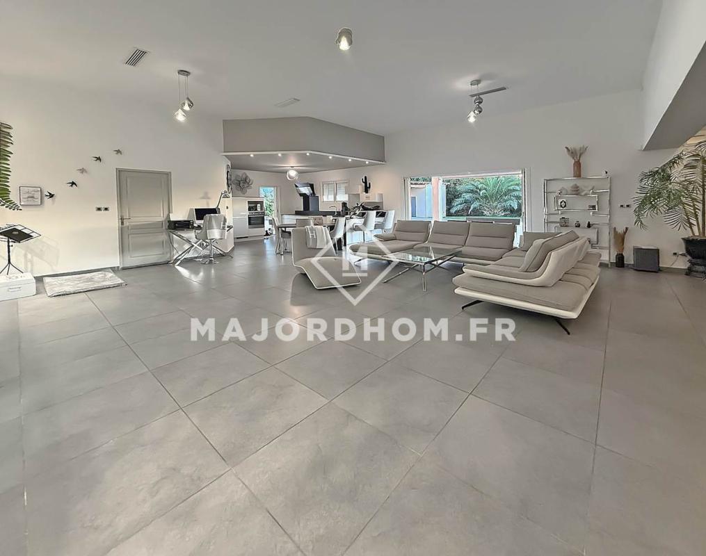 Alliant confort et authenticité, la maison dispose d'une grande pièce de vie avec cuisine américaine, l'ensemble s'ouvrant sur le jardin. Une suite de plain-pied avec sa salle d'eau complète ce niveau.