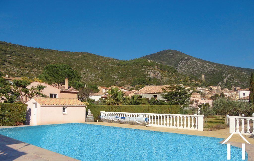 Propriété avec vues composée de deux habitations similaires. Propriété près du cur du charmant village de Roquebrun avec son large éventail de commodités telles que les restaurants, un bar, une supérette, un bureau de poste, ses caves viticoles ou encore une plage aménagée sur les rives de l'Orb et de diverses activités de loisirs. De par sa situation géographique, Roquebrun bénéficie d'un microclimat où orangers poussent en pleine terre. Roquebrun est également réputé pour son mimosa, son jardin méditerranéen et son architecture exceptionnelle. Les villes historiques de Béziers et de Montpellier (gares de TGV et aéroports internationaux) se trouvent respectivement à une petite demi-heure - et une heure de route en voiture. Située à 2 pas de la rivière et édifiée en 1998, cette grande villa dispose d'une configuration identique à chaque niveau : cuisine salon salle à manger 3 chambres 1 salle de bain et des toilettes séparées. De plus, à l'étage, 1 escalier en colimaçon conduit à une 7ième chambre. Ouvertures par baies vitrées soleil levant donnant à chaque niveau sur 1 grande terrasse totalement couverte. Une construction annexe constitue le garage pour 1 véhicule et la lingerie avec 1 salle d'eau supplémentaire + wc. A proximité de la piscine (10 x 5) le local technique (piscine au chlore ou au sel). Le terrain de 2165m² (constructible) se prolonge sur un jardin parfaitement entretenu avec essences méditerranéennes et un ravissant petit kiosque agrémente les lieux à proximité du terrain de pétanque (incontournable ici). Un forage alimente le jardin et la piscine. Climatisation réversible dans l'ensemble de l'habitation et climatisation gainable à l'étage. La villa bénéficie d'une superbe vue sur Roquebrun et est située proche des commerces du village. La villa est vendue meublée. Visites sur rendez-vous