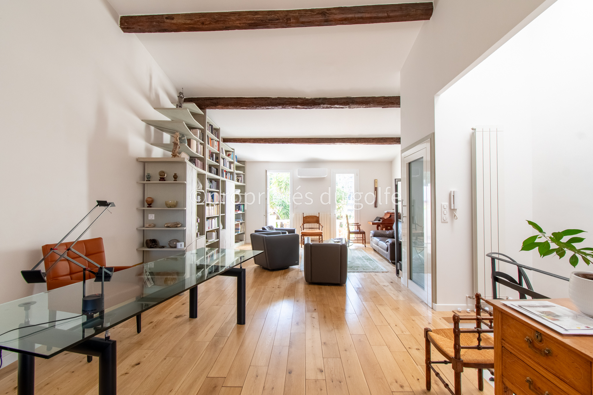 Propriété avec vues composée de deux habitations similaires. Propriété près du cur du charmant village de Roquebrun avec son large éventail de commodités telles que les restaurants, un bar, une supérette, un bureau de poste, ses caves viticoles ou encore une plage aménagée sur les rives de l'Orb et de diverses activités de loisirs. De par sa situation géographique, Roquebrun bénéficie d'un microclimat où orangers poussent en pleine terre. Roquebrun est également réputé pour son mimosa, son jardin méditerranéen et son architecture exceptionnelle. Les villes historiques de Béziers et de Montpellier (gares de TGV et aéroports internationaux) se trouvent respectivement à une petite demi-heure - et une heure de route en voiture. Située à 2 pas de la rivière et édifiée en 1998, cette grande villa dispose d'une configuration identique à chaque niveau : cuisine salon salle à manger 3 chambres 1 salle de bain et des toilettes séparées. De plus, à l'étage, 1 escalier en colimaçon conduit à une 7ième chambre. Ouvertures par baies vitrées soleil levant donnant à chaque niveau sur 1 grande terrasse totalement couverte. Une construction annexe constitue le garage pour 1 véhicule et la lingerie avec 1 salle d'eau supplémentaire + wc. A proximité de la piscine (10 x 5) le local technique (piscine au chlore ou au sel). Le terrain de 2165m² (constructible) se prolonge sur un jardin parfaitement entretenu avec essences méditerranéennes et un ravissant petit kiosque agrémente les lieux à proximité du terrain de pétanque (incontournable ici). Un forage alimente le jardin et la piscine. Climatisation réversible dans l'ensemble de l'habitation et climatisation gainable à l'étage. La villa bénéficie d'une superbe vue sur Roquebrun et est située proche des commerces du village. La villa est vendue meublée. Visites sur rendez-vous