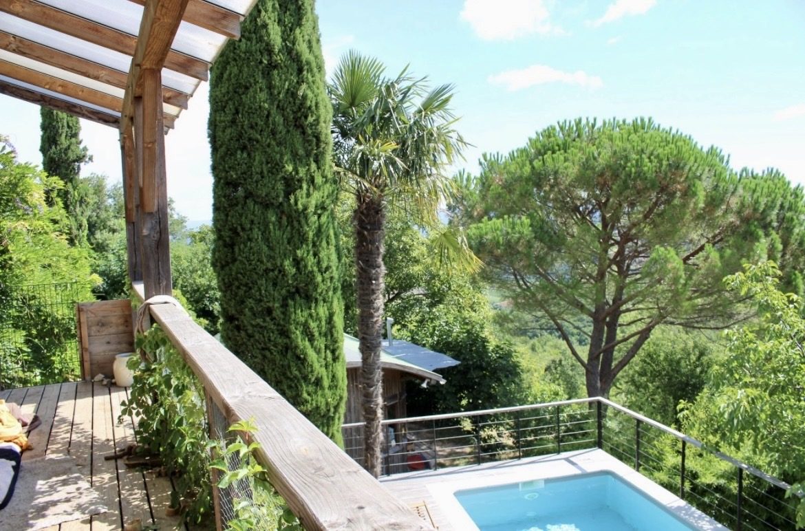 Propriété avec vues composée de deux habitations similaires. Propriété près du cur du charmant village de Roquebrun avec son large éventail de commodités telles que les restaurants, un bar, une supérette, un bureau de poste, ses caves viticoles ou encore une plage aménagée sur les rives de l'Orb et de diverses activités de loisirs. De par sa situation géographique, Roquebrun bénéficie d'un microclimat où orangers poussent en pleine terre. Roquebrun est également réputé pour son mimosa, son jardin méditerranéen et son architecture exceptionnelle. Les villes historiques de Béziers et de Montpellier (gares de TGV et aéroports internationaux) se trouvent respectivement à une petite demi-heure - et une heure de route en voiture. Située à 2 pas de la rivière et édifiée en 1998, cette grande villa dispose d'une configuration identique à chaque niveau : cuisine salon salle à manger 3 chambres 1 salle de bain et des toilettes séparées. De plus, à l'étage, 1 escalier en colimaçon conduit à une 7ième chambre. Ouvertures par baies vitrées soleil levant donnant à chaque niveau sur 1 grande terrasse totalement couverte. Une construction annexe constitue le garage pour 1 véhicule et la lingerie avec 1 salle d'eau supplémentaire + wc. A proximité de la piscine (10 x 5) le local technique (piscine au chlore ou au sel). Le terrain de 2165m² (constructible) se prolonge sur un jardin parfaitement entretenu avec essences méditerranéennes et un ravissant petit kiosque agrémente les lieux à proximité du terrain de pétanque (incontournable ici). Un forage alimente le jardin et la piscine. Climatisation réversible dans l'ensemble de l'habitation et climatisation gainable à l'étage. La villa bénéficie d'une superbe vue sur Roquebrun et est située proche des commerces du village. La villa est vendue meublée. Visites sur rendez-vous
