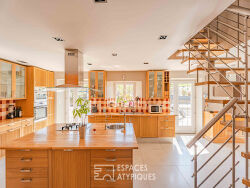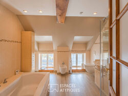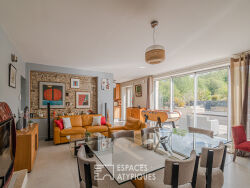 Au sein d'une nature préservée, dans le bocage Normand à quelques minutes de Villers-Bocage et des Monts d'Aunay, ce magnifique ancien corps de ferme du XVIIIème siècle a bénéficié d'une rénovation de qualité mêlant matériaux anciens à des prestations techniques modernes permettant d'apprécier la flore environnante sublimé par un étang, un parc soigné dans un confort des plus contemporain. Cette propriété unique se compose de deux maisons indépendantes mais communicantes, configuration idéale pour envisager une grande famille avec un lieu de vie principal complété d'un lieu d'accueil et / ou permettant de pratiquer de la location saisonnière. La maison principale d'environ 160 m² a été pensée comme un lieu de vie confortable ouvert sur l'extérieur. De vastes baies vitrées inondent de lumière l'espace salon, équipé d'un poêle inclinable et ouvert sur une terrasse exposée sud. La cuisine équipée de 40 m² est un espace convivial, idéal pour partager des moments de vie autour de son îlot central. Un studio d'environ 20 m² entièrement aménagé et équipé avec accès indépendant vient compléter le rez-de-chaussée. Un escalier moderne alliant bois et métal distribue le premier étage où l'on peut découvrir une vaste suite parentale d'environ 60 m² surplombant la terrasse et dévoilant le magnifique parc. Ce plateau accueille une deuxième chambre d'environ 30 m² bénéficiant de sa propre salle d'eau et d'une impressionnante pièce dressing. Une troisième salle de bains indépendante ainsi qu'un dressing complètent ce niveau. La seconde habitation, d'une surface de 120 m², offre un agencement chaleureux sur trois niveaux. Au rez-de-chaussée se trouve un séjour cosy réchauffé par une jolie cheminée d'époque, complété par une cuisine aménagée et équipée. L'étage est dédié au repos, avec une belle chambre, un dressing indépendant et une salle de bains complète. L'ensemble est couronné par une spacieuse chambre mansardée au dernier niveau. Un ancien garage a été transformé en charmant duplex d'environ 30 m² communiquant également avec l'espace extérieur grâce à des larges huisseries. Cette habitation est composée d'une pièce de vie avec cuisine équipée, d'une salle de douche et d'une chambre en mezzanine. Un appentis a été aménagé en espace bien-être, accueillant un bain nordique et une douche extérieure. La grande terrasse est dotée d'un second espace zen, agrémenté d'une fontaine et d'un brasero, promettant de paisibles moments de détente. Ce domaine unique dispose également d'un box à chevaux, d'un étang avec sa petite cascade, et d'espaces de stationnement en plus de l'enrobé avec deux garages et un carport. Un véritable coup de coeur pour les amoureux de la nature et de l'architecture authentique! Distance : 25 minutes de Caen par l'A84 CLASSE ENERGIE : B / CLASSE CLIMAT : B Montant moyen estimé des dépenses annuelles d'énergie pour un usage standard, établi à partir des prix de l'énergie au 1er janvier 2021 compris entre : 1 850 euros et 2 600 euros. Les informations sur les risques auxquels ce bien est exposé sont disponibles sur le site Géorisques : www.georisques.gouv.fr Contact : Séverine ANGLIO, Agent commercial EI 06.73.55.34.05 - RSAC : 849 299 722 RCS Nanterre Séverine ANGLIO (EI) Agent Commercial - Numéro RSAC : 849299722 - NANTERRE.