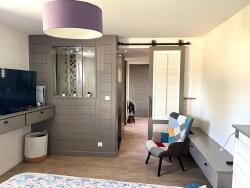 A l étage : une salle de jeux , une pièce dressing , 3 chambres avec grands rangements pour chacune , salle de bain avec double douche .