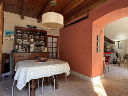The beautifully maintained main house (approx. 199 m²) is bright and welcoming throughout. On the ground floor, it comprises a spacious living room opening onto a covered terrace overlooking the swimming pool ? perfect for outdoor dining and relaxation ? a formal dining room, a fully fitted and equipped high-quality kitchen, a ground-floor bedroom with private bathroom and WC, a utility room and a separate WC.