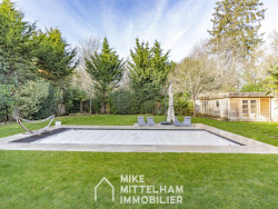 - Au rez-de-chaussée : splendide pièce de réception lumineuse orientée sud-ouest, ouverte sur terrasse avec pergola bioclimatique et vaste jardin arboré doté d'une piscine chauffée. Grande cuisine entièrement équipée idéale pour recevoir. Suite parentale de plain-pied avec salle de bains. - À l'étage : quatre belles chambres lumineuses et une salle de bains avec douche.