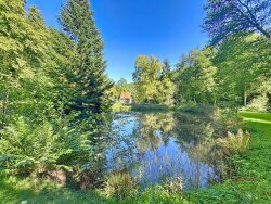 À l'extérieur, la nature est reine. Le terrain de 1,5 hectare, entièrement clôturé, vous offre un cadre de vie rare et privilégié, avec son étang paisible, ses arbres majestueux et ses coins d'ombre propices à la détente. Un abri de jardin permet de stocker le bois pour alimenter le poêle en faïence, véritable coeur chaleureux de la maison, complété par des convecteurs électriques pour un confort optimal toute l'année.