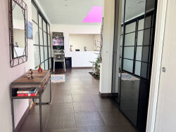 A seulement 15 mn à pieds du centre de Lesneven et moins de 10 km des plages du Finistère Nord, Villa d'ici vous présente une propriété d'exception construite en 2014, où volumes, lumière et prestations haut de gamme s'unissent dans un esprit résolument contemporain. Pensée pour une vie de plain-pied, cette maison à ossature bois développe 316 m² habitables aux volumes parfaitement agencés et modulables pour s'adapter à vos besoins. Dès l'entrée, le vaste hall au style patio distribue harmonieusement les différents espaces de la maison. Le coeur de vie, spectaculaire avec ses 106 m², accueille salon, salle à manger et cuisine aménagée et équipée avec arrière-cuisine. Les larges baies vitrées créent une véritable sensation de dedans/dehors et prolongent naturellement les espaces vers le jardin paysagé. Un poêle à granules assurent le chauffage pour toute la maison. Un bureau complète cet ensemble, idéal pour le télétravail. ou une chambre supplémentaire. Un espace nuit comprend deux chambres, un couloir avec placards dressing et une salle d'eau. L'espace parental offre une chambre avec accès direct à la terrasse, une salle d'eau, un dressing et WC privatif. Une buanderie/cellier aménagée de 26 m² apporte un confort quotidien appréciable. Le bien-être est au rendez-vous avec une pièce dédiée de 35 m² abritant une piscine intérieure 6 x 3 m, vitrée et ouverte sur la terrasse, avec jacuzzi extérieur. Un espace détente rare, utilisable toute l'année. Implantée sur un terrain de 3 069 m² , constructible, superbement paysagé, la propriété dispose de trois terrasses (36 m², 30 m² et 21 m² couvertes), d'un point d'eau, d'une serre potagère, d'une allée bitumée et d'un portail électrique. Côté prestations : grand garage indépendant de 80 m² avec porte motorisée, carport, bornes de recharge pour véhicules électriques (garage et carport), panneaux solaires, sous-sol avec espace de stockage carrelé, local technique piscine et cave. Cette maison, pourra tout aussi bien accueillir une famille ou des personnes en recherche d'une maison partagée avec la possibilité d'ajouter une ou plusieurs constructions annexes. Rare sur le secteur de Lesneven : modernité, confort et sérénité, à proximité immédiate du littoral ! Pour plus d'informations contactez Sandrine ANDRE-GENDRON au 07.83.83.75.33. Agent commercial (EI) RSAC 841058985 BREST Les informations sur les risques auxquels ce bien est exposé sont disponibles sur le site Géorisques : https://www.georisques.gouv.fr (3.53 % honoraires TTC à la charge de l'acquéreur.) SANDRINE ANDRE GENDRON (EI) Agent Commercial - Numéro RSAC : 84105898500018 - .