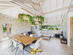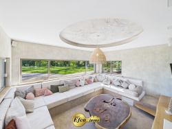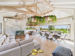 Propriété d'exception au milieu de la verdure Nichée dans un environnement privilégié au milieu de la nature avec une vue panoramique, cette propriété neuve de 222 m2 séduit par son design contemporain et son cadre verdoyant d'un hectare, entièrement clos. Construite en 2023, elle conjugue modernité, confort et indépendance, à seulement quelques minutes des commodités et des axes routiers. L'entrée, majestueuse, s'effectue par un portail encadré de colonnes en pierre, annonçant le caractère exceptionnel de la demeure. À l'extérieur, tout a été pensé pour profiter pleinement du calme et des paysages : vaste terrasse, jacuzzi, espaces paysagers soignés, sans aucun vis-à-vis. À l'intérieur, les volumes généreux, la lumière et les matériaux de haut standing sont les maîtres-mots. La pièce de vie principale s'ouvre largement sur le jardin grâce à de grandes baies vitrées. La cuisine, véritable coeur de la maison, allie esthétisme et praticité : mobilier sur mesure en chêne, électroménager haut de gamme Gaggenau, cave à vin, wok intégré, triple four et double lave-vaisselle. Salle à manger et salon complètent cet espace convivial, sublimé par des créations murales uniques réalisées par un artiste reconnu. Le rez-de-chaussée accueille également une suite parentale élégante avec salle de bain raffinée (double douche, baignoire, double vasque), un placard sur mesure et dressing spacieux, le tout ouvrant directement sur le jacuzzi. Un second salon sur mesure, réalisé avec goût, un cellier, des toilettes indépendants et une buanderie viennent parfaire ce niveau. Un escalier aérien mène à l'étage, baigné de lumière grâce à ses parois vitrées. Deux chambres y prennent place, chacune avec sa salle d'eau privative et son toilette. Une spacieuse mezzanine et des toilettes indépendants.. Les combles offrent une pièce supplémentaire pour un bureau ou une chambre d'amis atypique. Côté confort, rien n'a été laissé au hasard : chauffage au sol par pompe à chaleur, climatisation, poêle à bois, porte automatisée, BSO et matériaux naturels. À l'extérieur, de nombreuses places de parking, un magnifique carport et un espace de jeux pour enfants complètent l'ensemble. Cette propriété rare allie esthétisme, innovation et sérénité. Une opportunité unique pour les amoureux de design, d'espace et de nature préservée. L'agence Efco immo se fera un plaisir de répondre à vos questions et de vous faire découvrir cette propriété ! Pour cela contactez-nous !