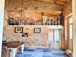 Côté technique : Rénovation complète tout en préservant son identité avec pierres et poutres apparentes, offrant un mélange harmonieux entre l'ancien et le moderne. Aucune anomalie électrique ou de gaz sur les diagnostics techniques, excellent DPE Les matériaux nobles sont mis en valeur, notamment par les carrelages en pierre bleue de Belgique, reflétant le souci du détail et de la qualité de cette rénovation. Aucun travaux n'est à prévoir pour cette propriété. Chauffage principal au gaz, cheminées à bois. Menuiseries sont en double vitrage, l'électricité a été entièrement refaite, tout comme la plomberie. Deux portails en fer forgé. Les plans de tous les éléments extérieurs, ainsi que des conduits électriques et de plomberie sont disponibles. L'assainissement est aux normes par micro-station.