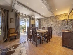 Le vaste jardin paysager offre une atmosphère enchanteresse, que ce soit autour de la belle piscine en faïence et sa plage en pierre, ou sous l'ombre de l'oliveraie, des arbres d'agrumes et d'autres espèces méditerranéennes. Une terrasse semi-ouverte longeant toute la maison, deux ateliers, un abri pour 2-3 voitures, une cave, une cave à vin, une chambre froide, un local chaudière, ainsi qu'un local technique pour la piscine complètent cet ensemble.